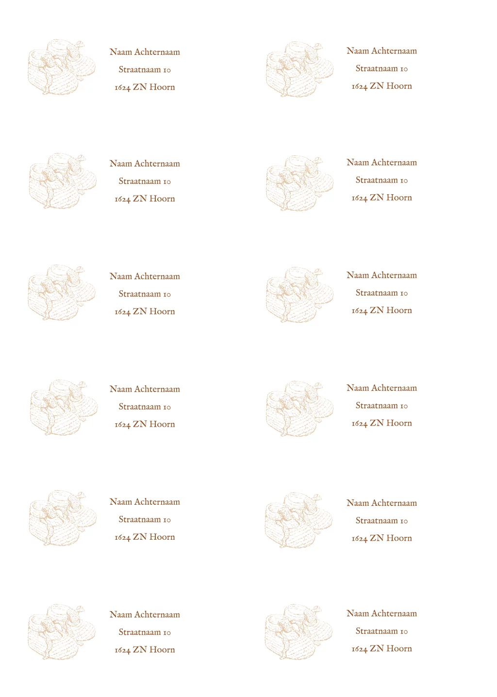 Schattige adresstickers voor geboortekaartjes met roze babyslofjes. Het ontwerp van de stickers kan helemaal naar wens aangepast worden in de online editor. Plaats je adressen op de stickers. Ieder vel bevat twaalf adresetiketten. • 12 adresstickers per vel • formaat 97mm x 45 mm per sticker.