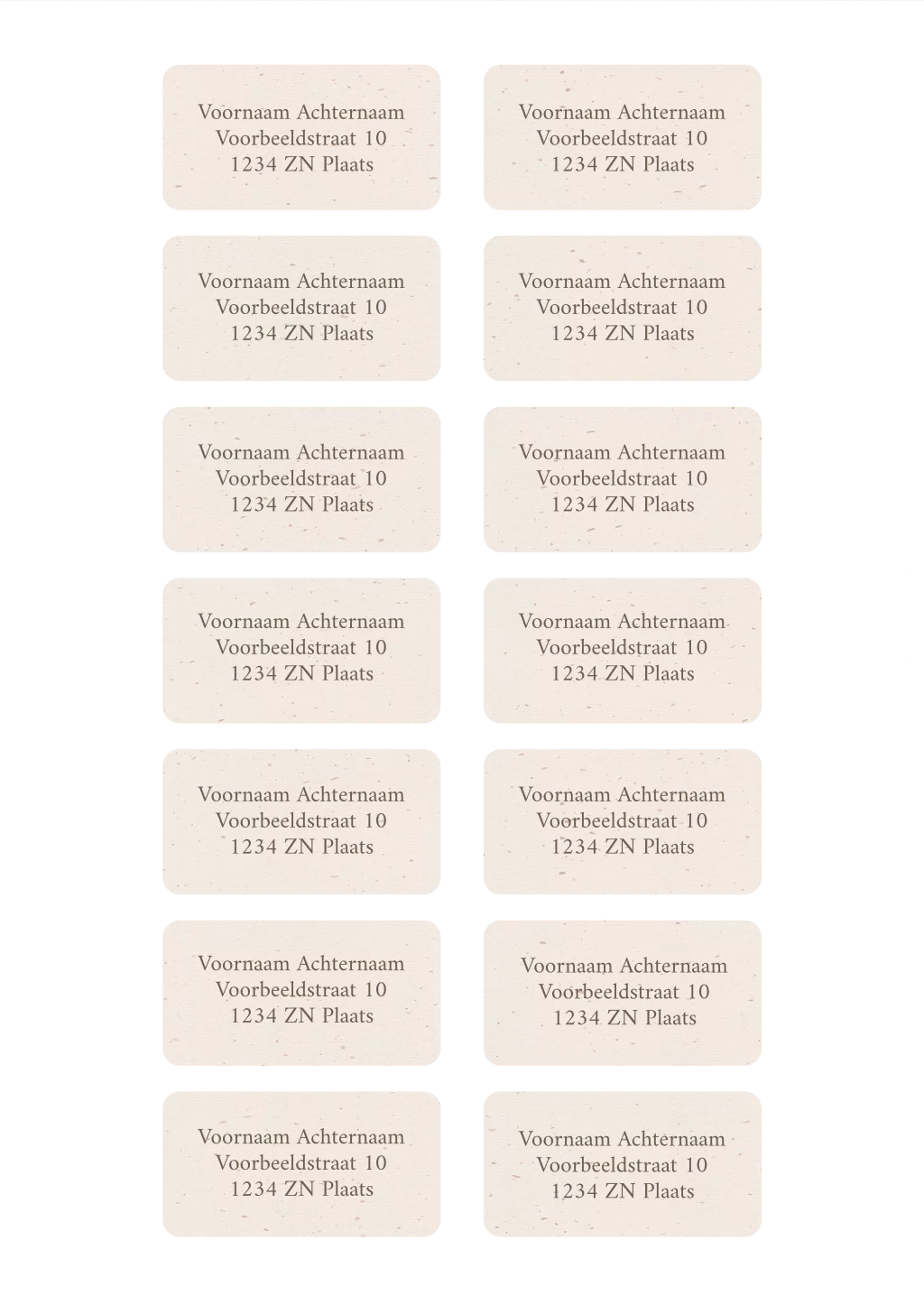 Mooie minimalistische adresstickers met een afgeronde hoek in een kleiner formaat voor een rustige uitstraling op de envelop. De achtergrond in beige heeft een oude look en geeft de adresstickers een vintage en nostalgische uitstraling. Een andere achtergrond toevoegen is ook mogelijk. Plaats je adressen op de stickers.