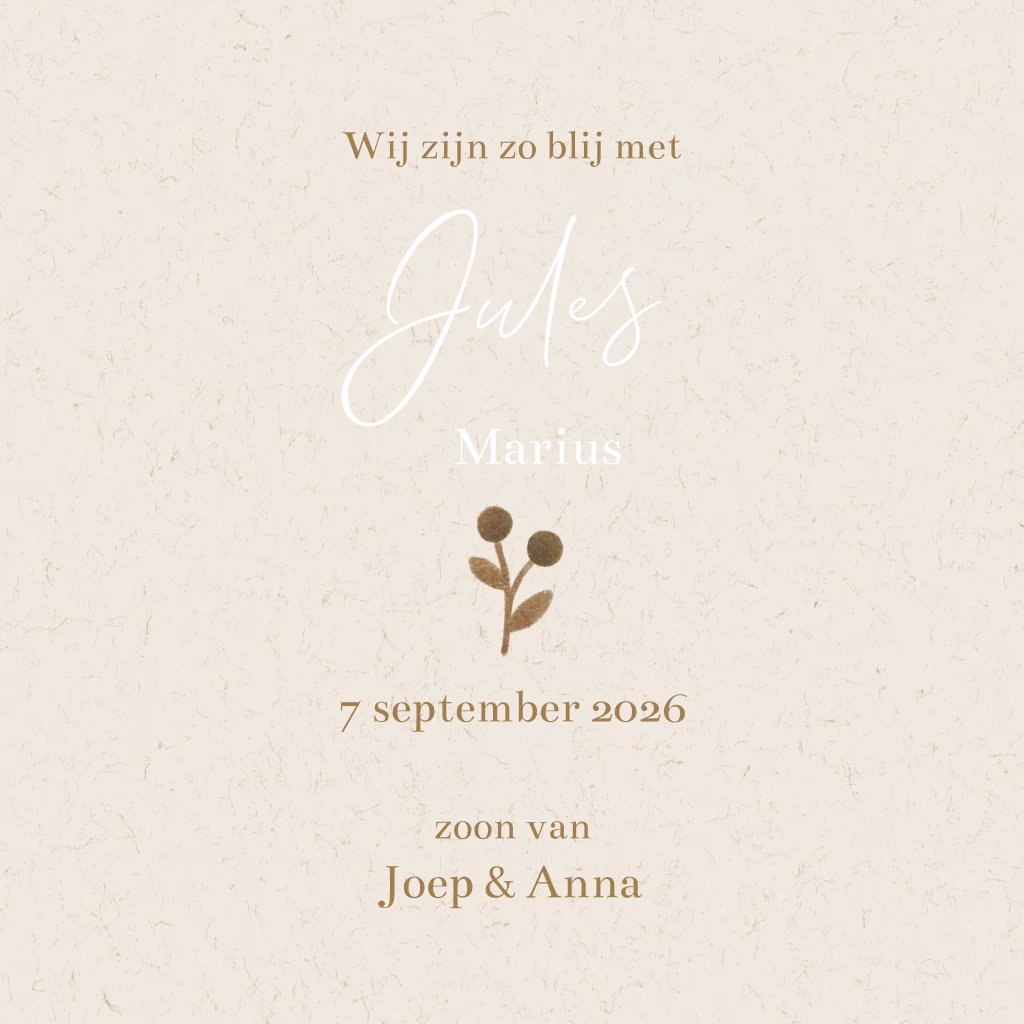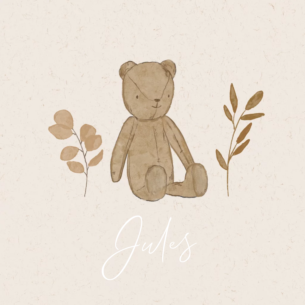 Lief unisex geboortekaartje voor jongens en meisjes met een vintage beertje. De naam en details in foliedruk geven het kaartje iets extra's. Bestel een proefdruk van dit hippe geboortekaartje zodat je hem in het echt kunt bewonderen.