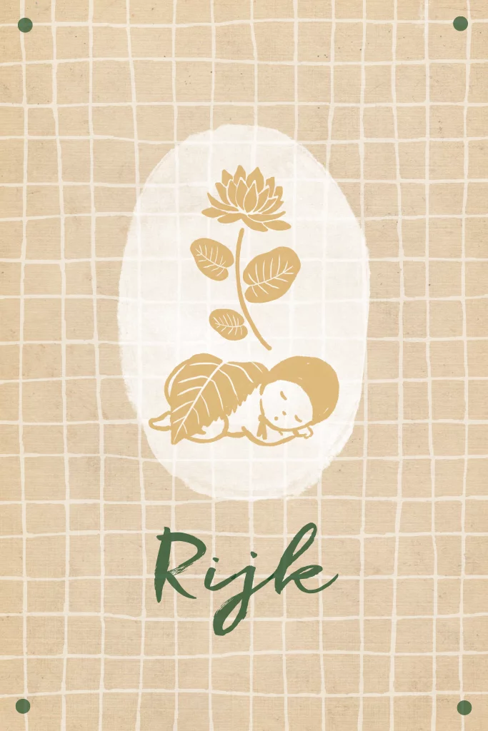Een lief jongens geboortekaartje met geboortebloem. De ruitjes en warme kleuren zoals bruin, okergeel en groen geven dit jongens geboortekaartje een natuurlijke, rustieke en vintage uitstraling. Iedere maand heeft zijn eigen unieke geboortebloem, zoals deze waterlelie die symbool staat voor de maand juli. Kies in de beeldbank jouw door Zoetje getekende geboortebloem met bloemenkindje welke van toepassing is op de geboortemaand van jullie kindje. Pas de kleuren naar wens aan in de editor. Bestel een proefdruk om dit geboortekaartje met geboortebloem in het echt te bekijken.