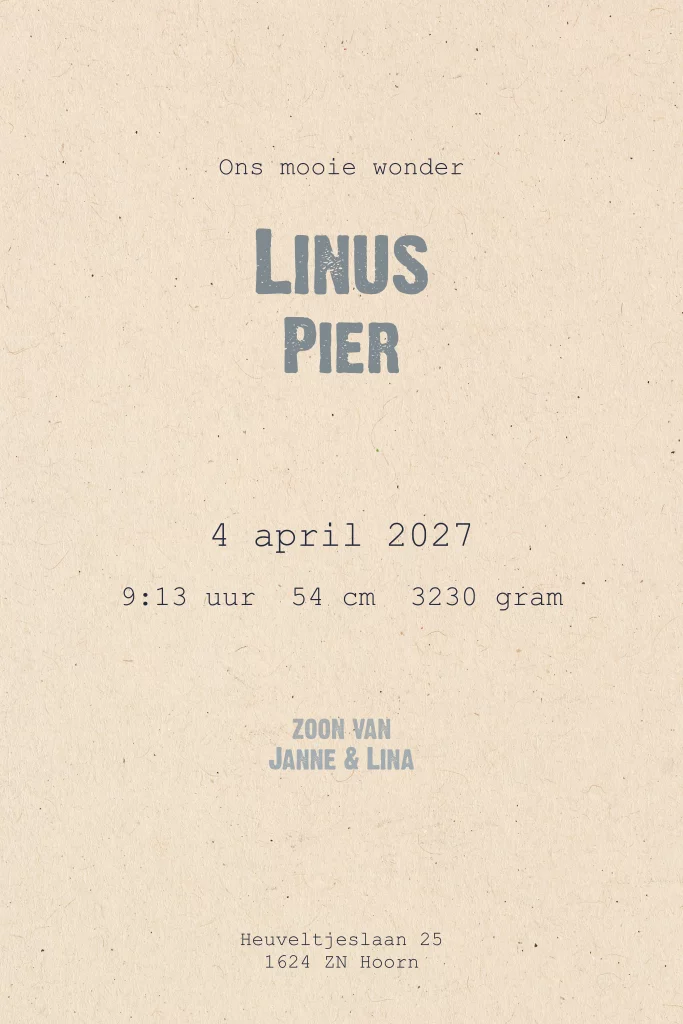 GEBOORTEKAARTJE HEUVELS EN VLIEGTUIGJE