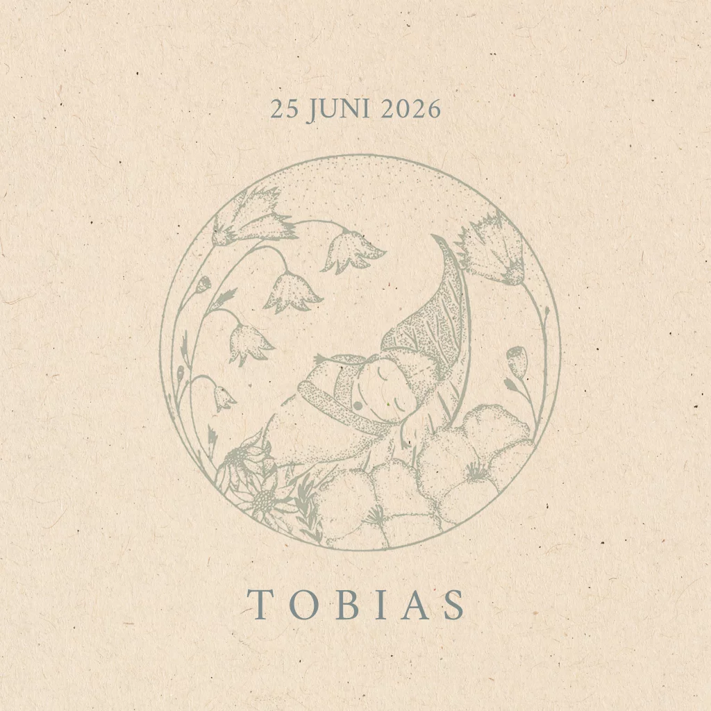 Een lief geboortekaartje voor jullie zoon of dochter met een schattige illustratie van bloemen, blaadjes en een slapend kindje. Maak het jouw unieke kaartje en voeg je eigen teksten gemakkelijk toe in de online editor. Bestel een proefdruk om het kaartje in het echt te zien.