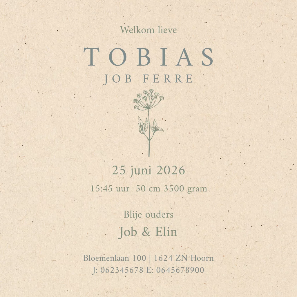 NEUTRAAL GEBOORTEKAARTJE BLOEMEN ILLUSTRATIE