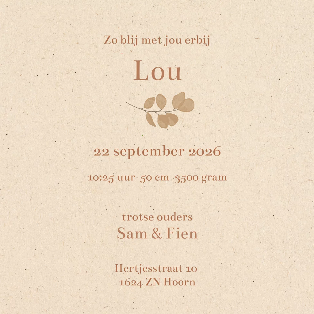 JONGENS GEBOORTEKAARTJE MET BABY ELEMENTEN IN AARDETINTEN