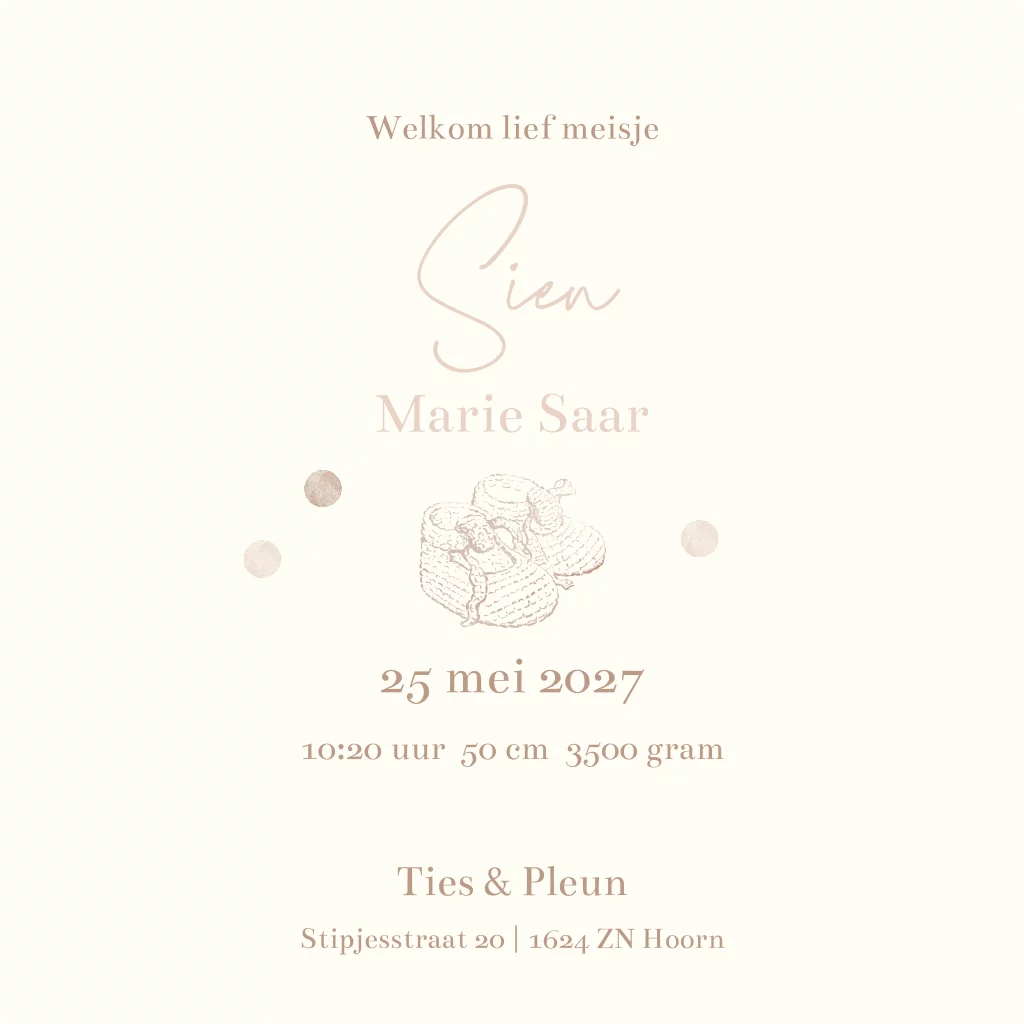 Lief olifant geboortekaartje voor en dochter. De geïllustreerde knuffel olifant is super schattig en geeft dit meisjes geboortekaartje een rustige uitstraling. In zacht oudroze. Aan de binnenzijde vind je vrolijke stipjes in zachte oudroze tinten en schattige, gebreide babyslofjes die dit meisjes geboortekaartje een lieve, zachte uitstraling geven. Bestel een proefdruk van dit dieren geboortekaartje met knuffel olifantje om hem in het echt te bekijken.