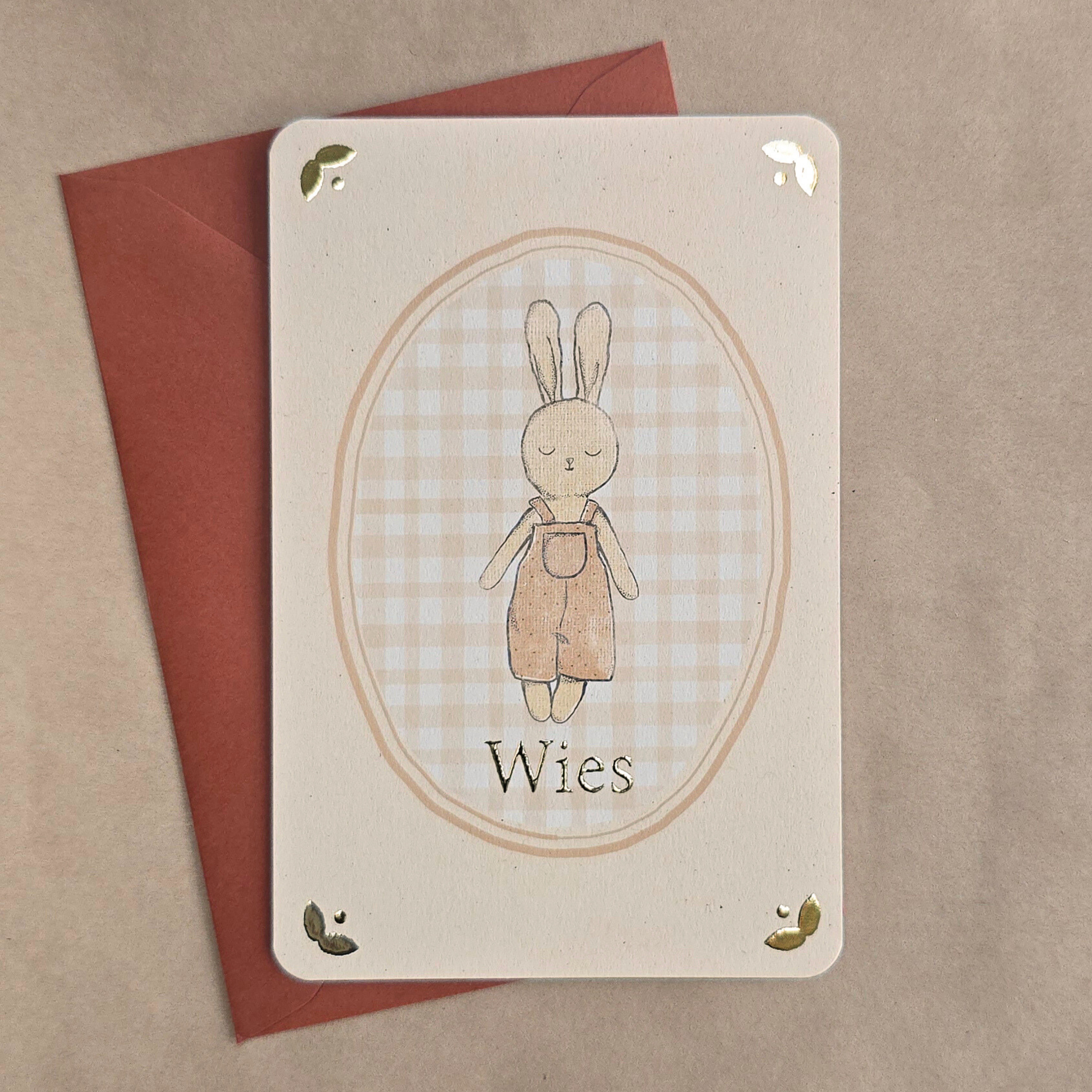 DIEREN GEBOORTEKAARTJE MET KONIJN EN RUITJES