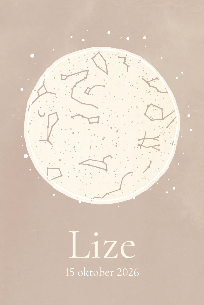 Een heel bijzonder geboortekaartje voor jullie dochter met foliedruk. De unieke sterrenhemel wordt op basis van de geboortedatum, geboorteplaats en geboortetijd berekend. Pas jouw kaartje naar wens aan en Zoetje plaatst na de geboorte de unieke sterrenhemel in jullie kaartje. Voor vragen stuur gerust een mailtje.