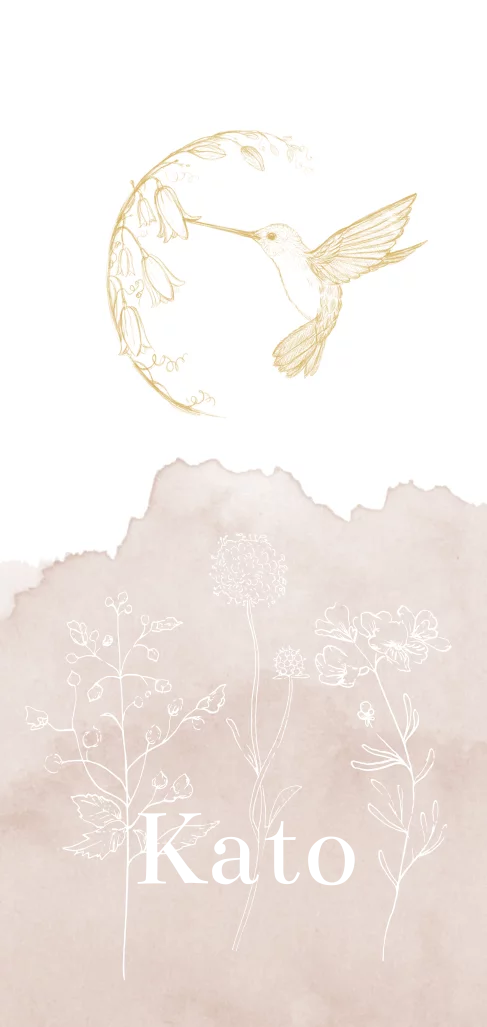 Mooi meisjes geboortekaartje met kolibrie en een bloemenkrans. Het oudroze watercolour in combinatie met de goudfolie accenten geven dit geboortekaartje voor jullie dochter een luxe uitstraling. Bewerk het kaartje zelf in de editor en vraag een proefdruk aan om hem in het echt te bewonderen.