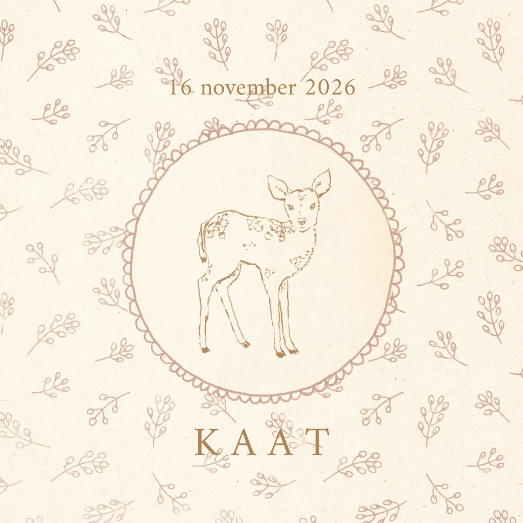 Een lief geboortekaartje voor een meisje. De achtergrond met bloemen en het schattige hertje in combinatie met wit en roze, geeft dit echte meisjes geboortekaartje een romantische uitstraling. Eenvoudig te personaliseren in de editor. Bestel een proefdruk om dit romantische geboortekaartje voor meisjes in het echt te zien.