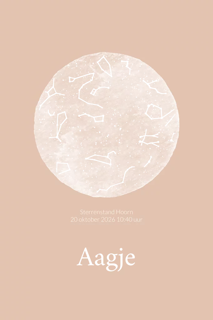 Een gepersonaliseerde sterrenstand in roségoud folie op een mooi zacht rozekaartje. De unieke sterrenhemel wordt op basis van de geboortedatum, geboorteplaats en geboortetijd berekend. Pas jouw kaartje naar wens aan en Zoetje plaatst na de geboorte de unieke sterrenhemel in jullie kaartje. Voor vragen stuur gerust een mailtje.