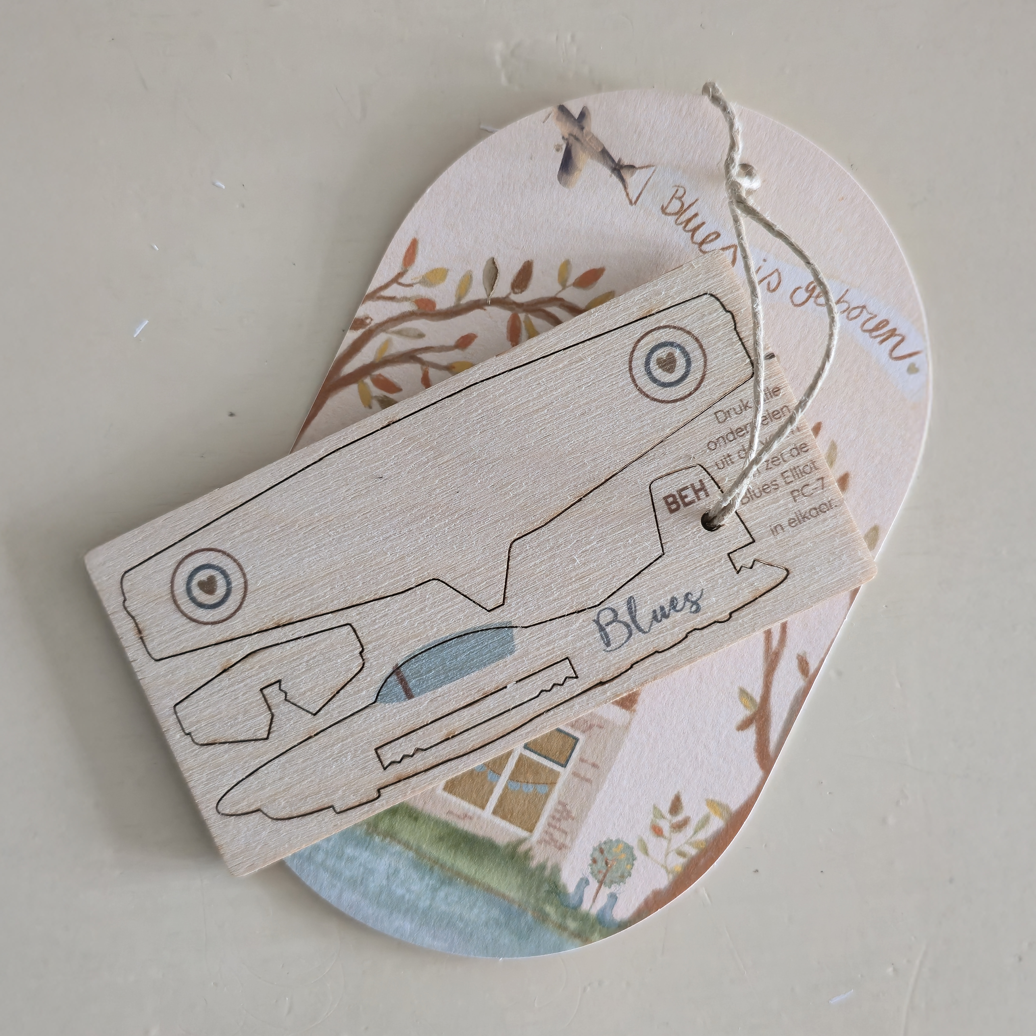 Dit houten vliegtuigje is perfect als originele toevoeging bij een geboortekaartje en zorgt voor een extra verrassing bij het openen van de post.