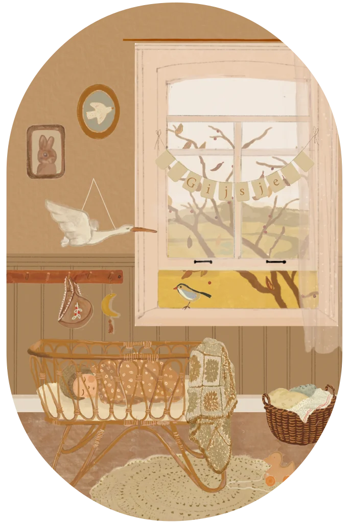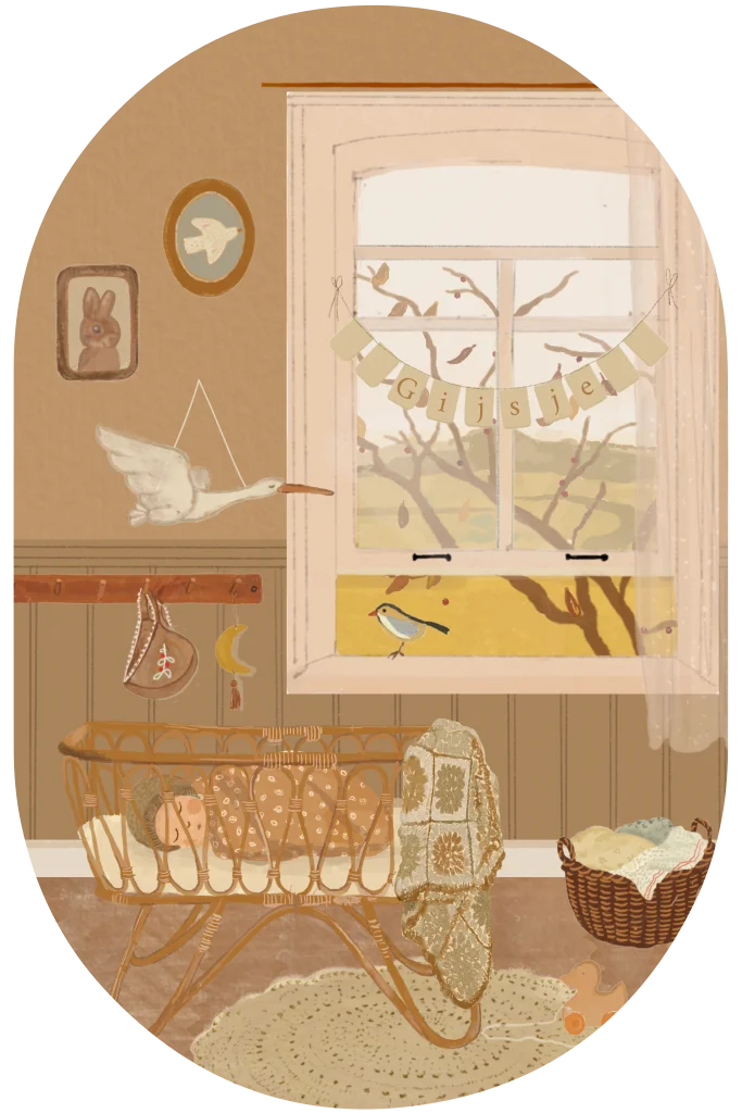 GEBOORTEKAARTJE LIEF BABYKAMERTJE ROTAN WIEGJE